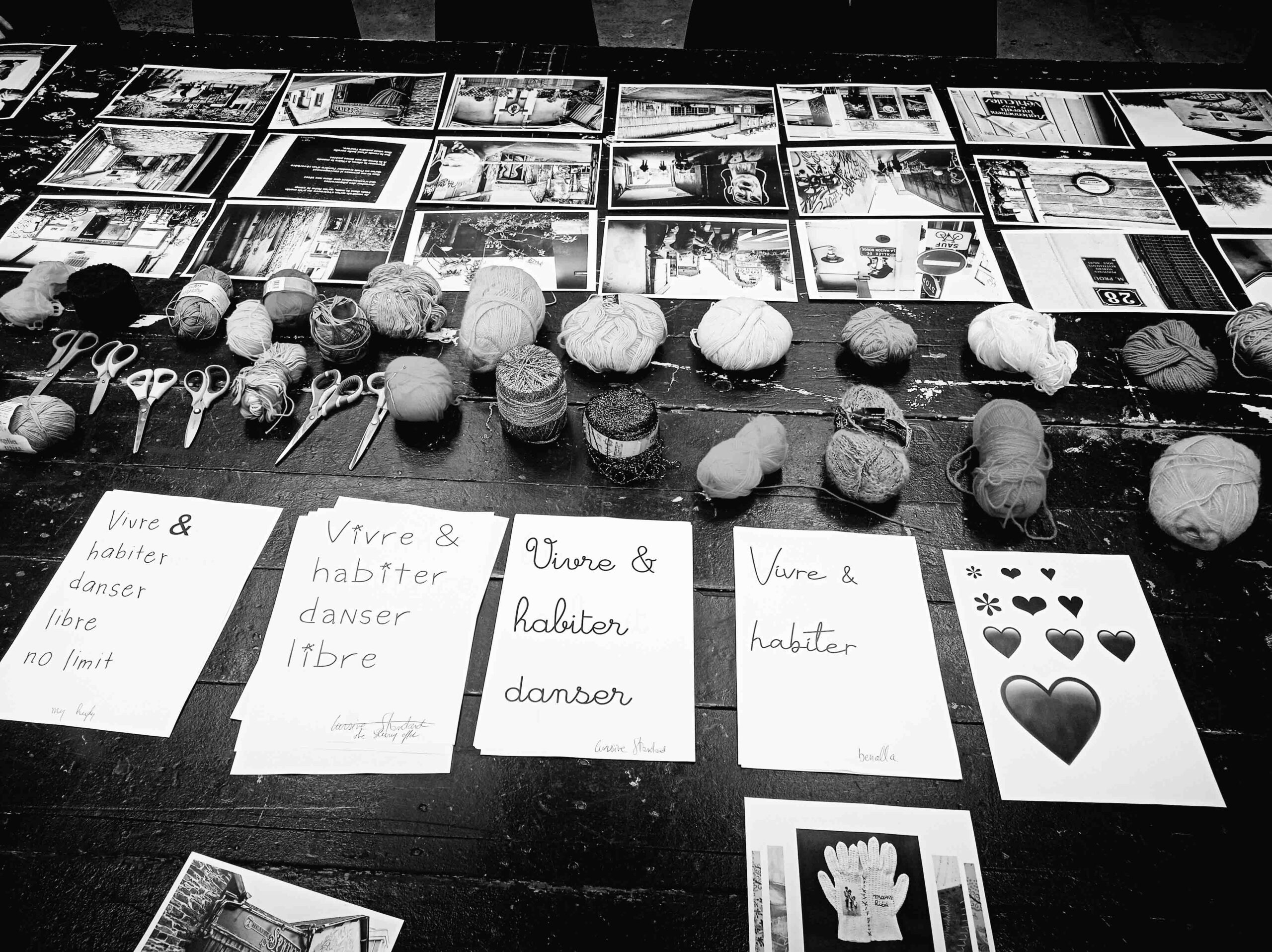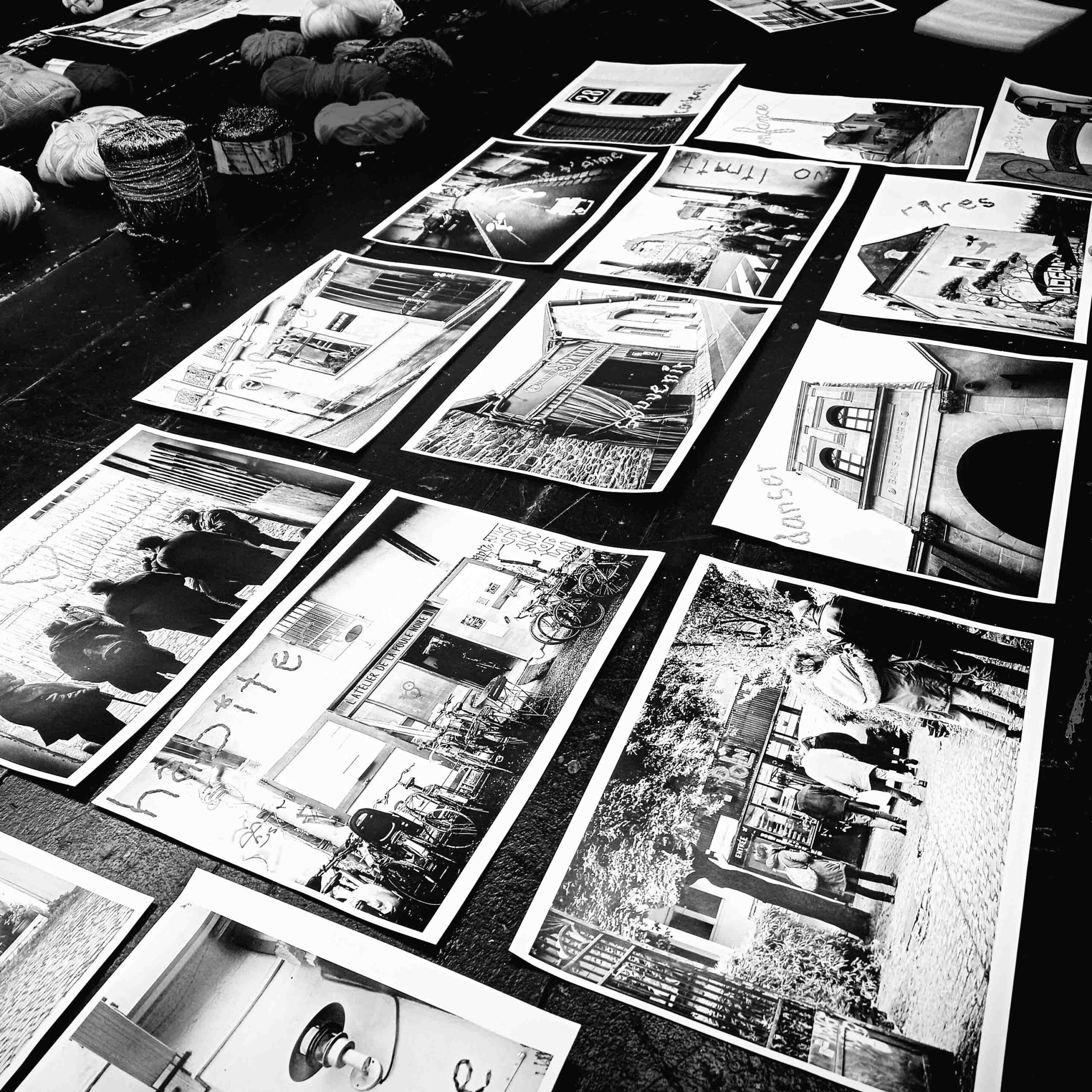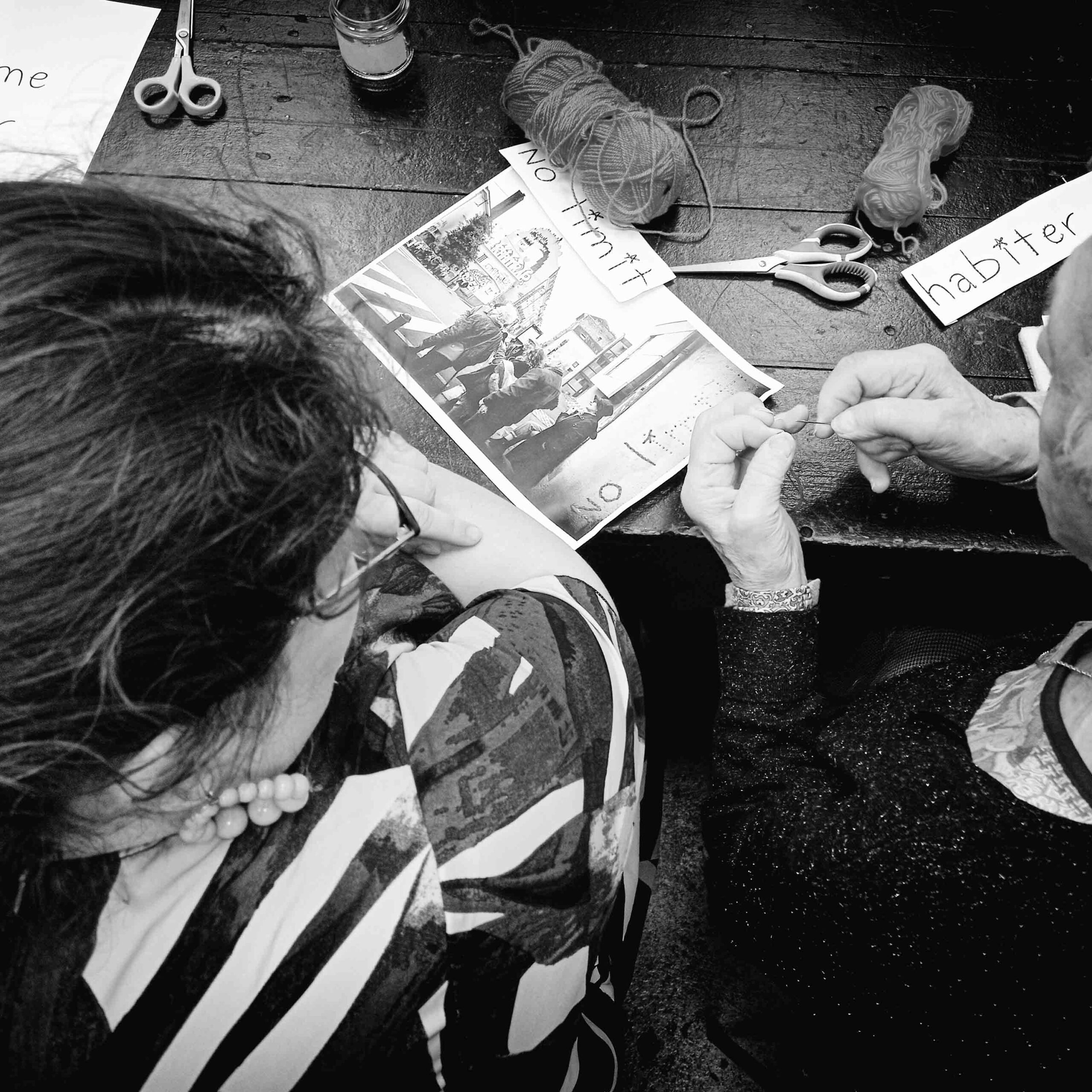 Pour cet atelier on a mis la mai à la pâte. Avec des aiguilles et du fil, nous avons commencé à broder des messages sur les images qui ont été réalisées lors de notre balade dans le quartier.