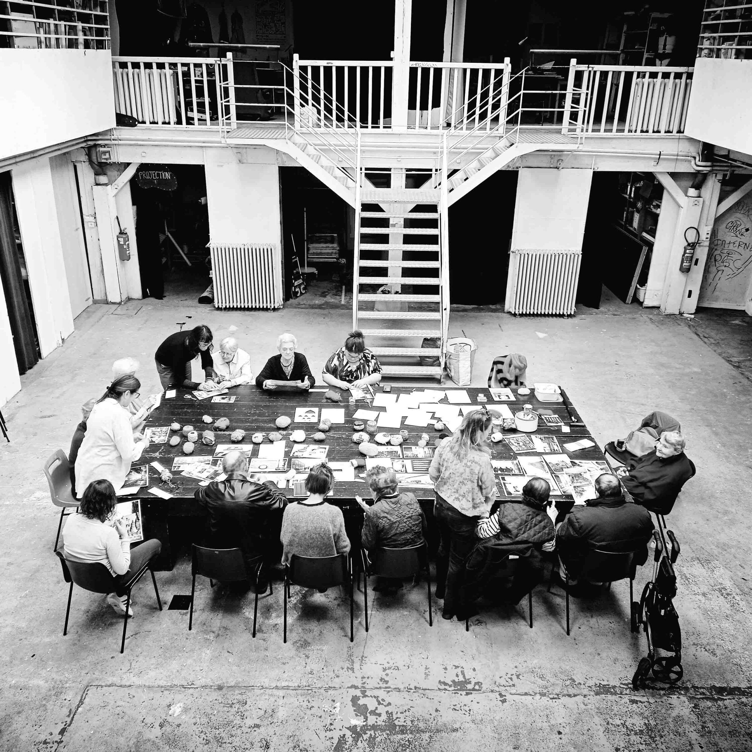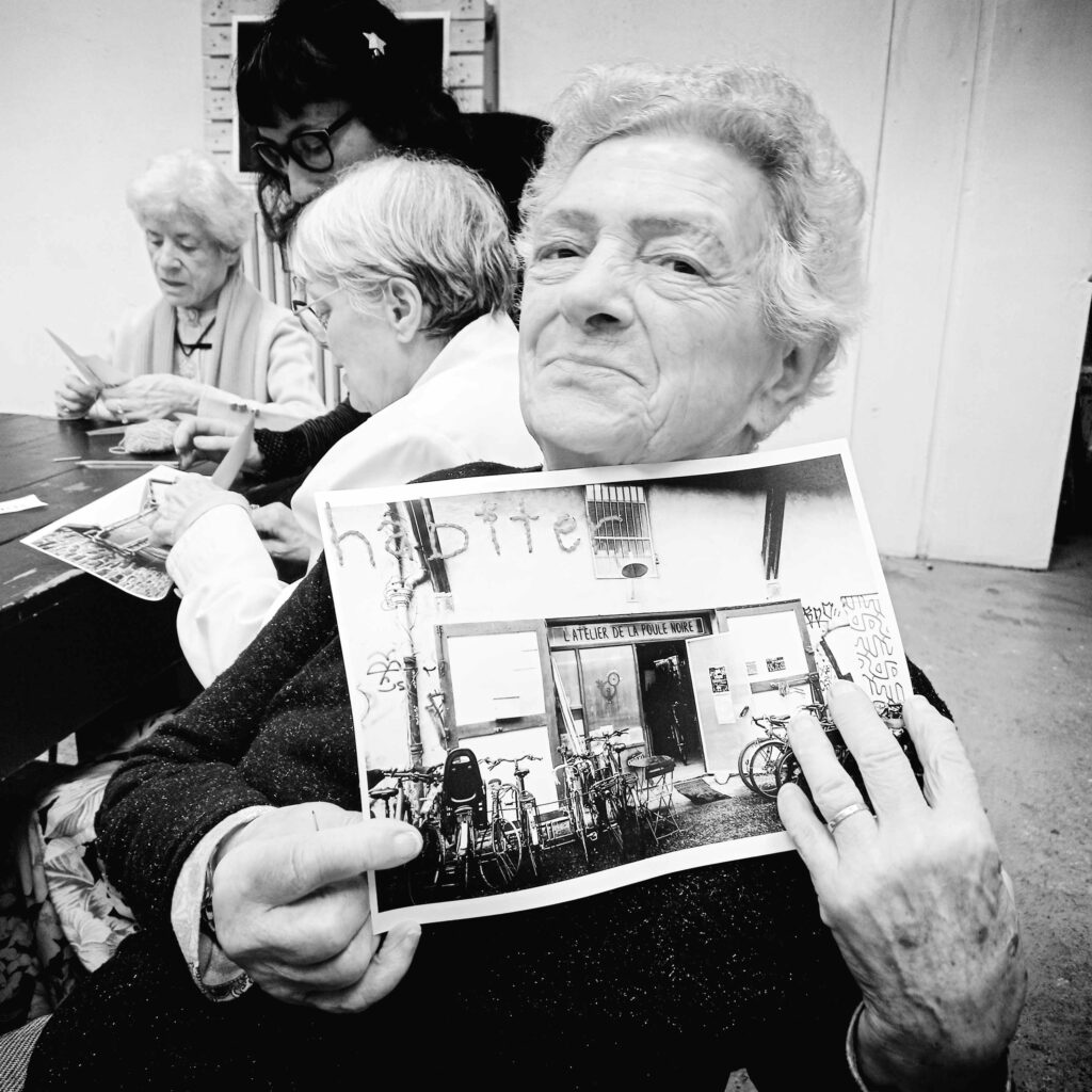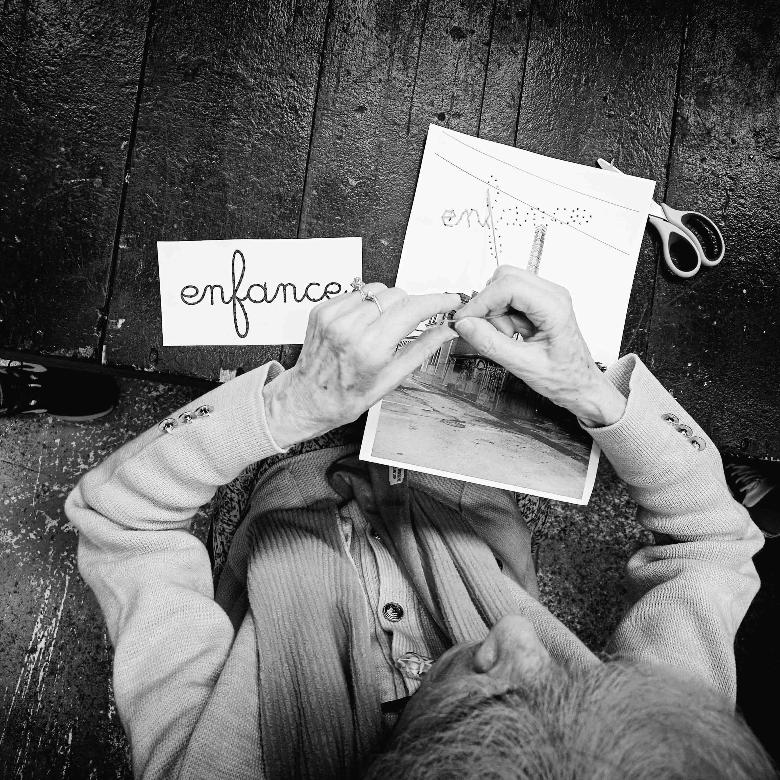 Pour cet atelier on a mis la mai à la pâte. Avec des aiguilles et du fil, nous avons commencé à broder des messages sur les images qui ont été réalisées lors de notre balade dans le quartier.