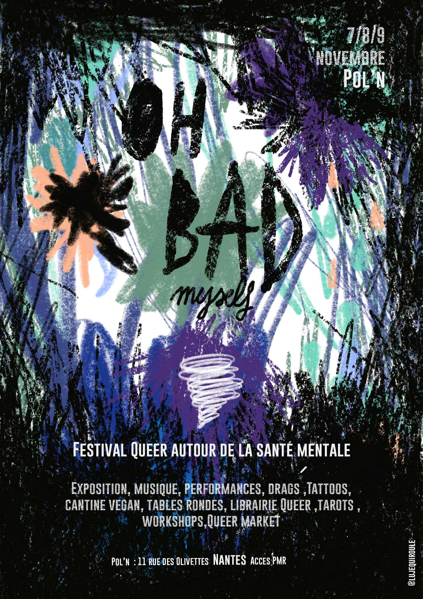 Un festival Queer autour de la santé mentale qui propose des tables rondes, une expo collective, des workshops, du tattoo, du tarot, un Queer art market, de la musique, des performances, du burlesque, des drags pour ensemble partager et se fédérer autour de la santé mentale.